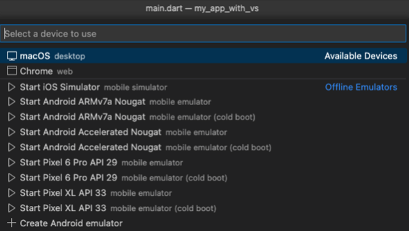 - VS Code 오른쪽 하단 상태바에서 실행할 Device 영역 클릭