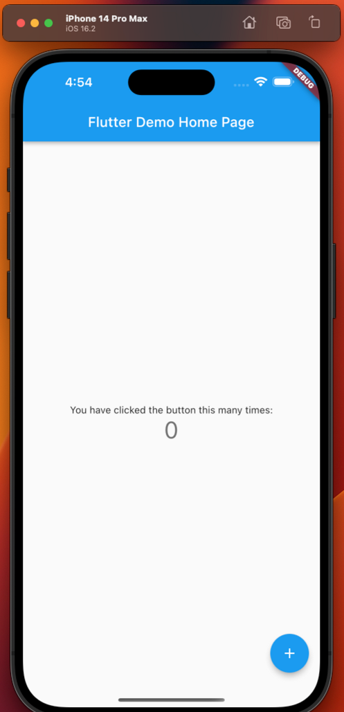 - “Start iOS Simulator” 선택시 가상의 iOS 화면이 표시되고 해당 프로젝트 앱이 실행