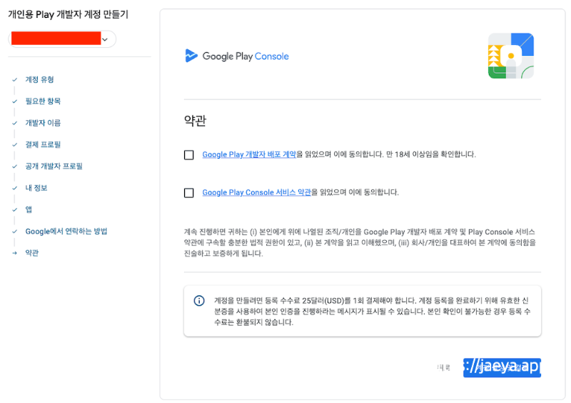 구글 플레이 스토어 개발자 계정 등록 방법에 대한 설명