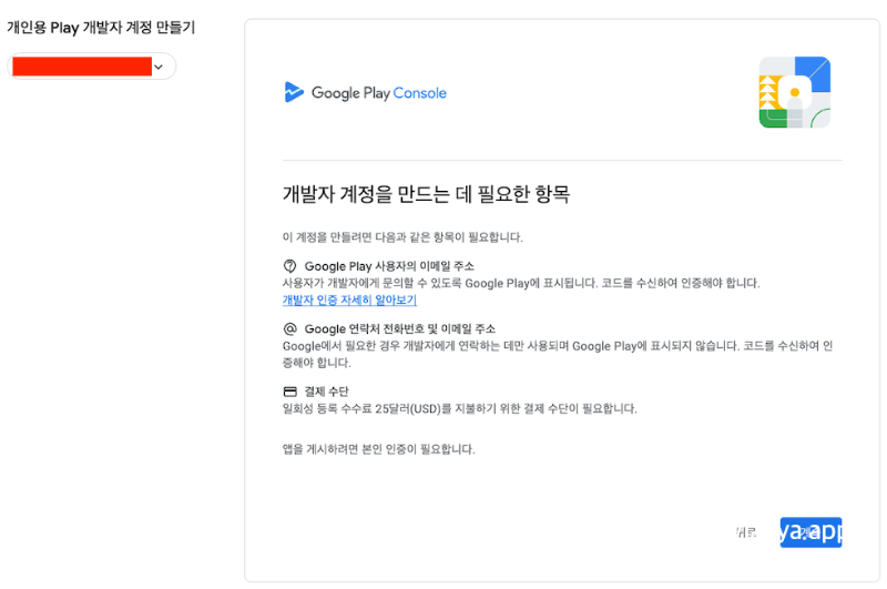 구글 플레이 스토어 개발자 계정 등록 방법에 대한 설명